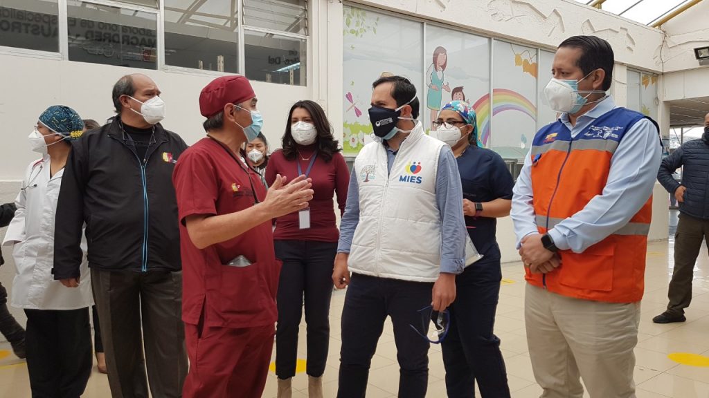 El Hospital Vicente Corral Moscoso recibió la visita del Ministro de Inclusión Económica y Social, Iván Granda Molina, como delegado del Presidente de la República para liderar el equipo del Gobierno Nacional en la zona 6 durante la emergencia sanitaria, y del Director Nacional de la Secretaría de Gestión de Riegos, Romeo Salazar, quienes acudieron para constatar la existencia de medicamentos para la atención a pacientes Covid y prendas de protección para el personal de salud que está al frente de la emergencia sanitaria.