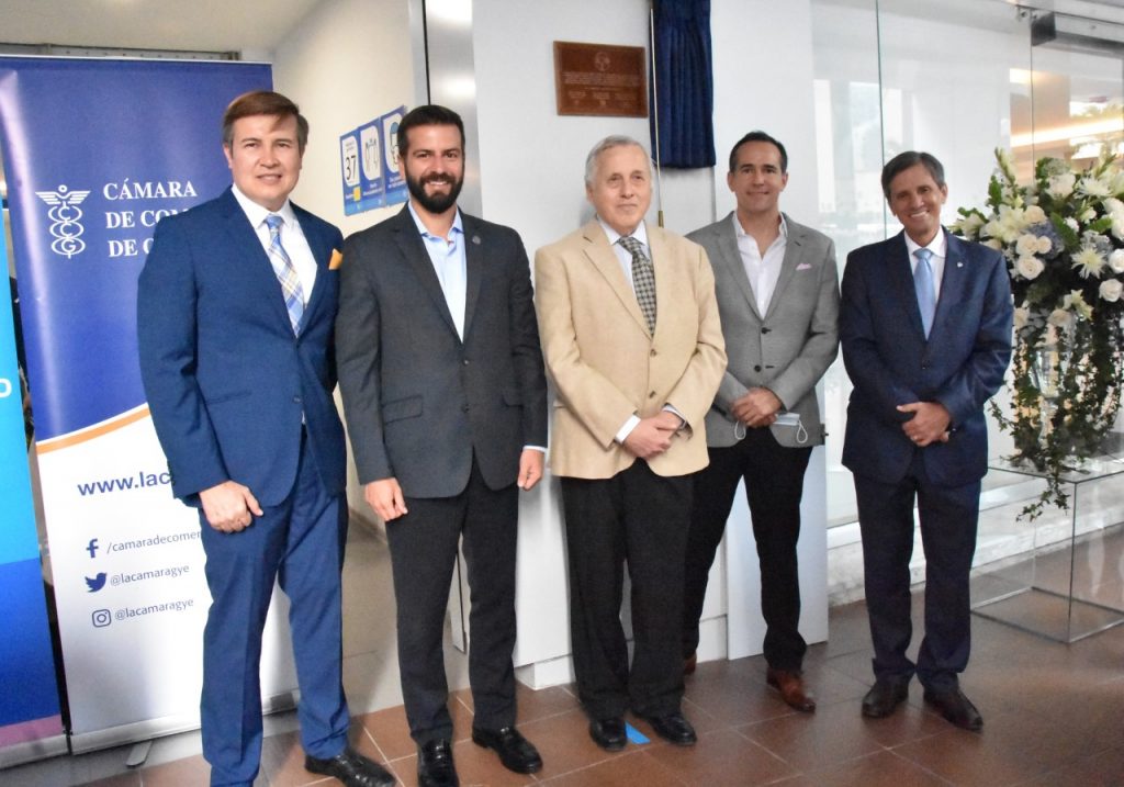 Eduardo González, Gerente General CFN; Pablo Arosemena, Presidente de la Cámara de Comercio de Guayaquil; León Roldós, Vicepresidente Comité del Bicentenario; Mario Paz y Miño, Presidente Directorio Banco del Pacífico y Andrés Baquerizo, Presidente Ejecutivo Banco del Pacífico.