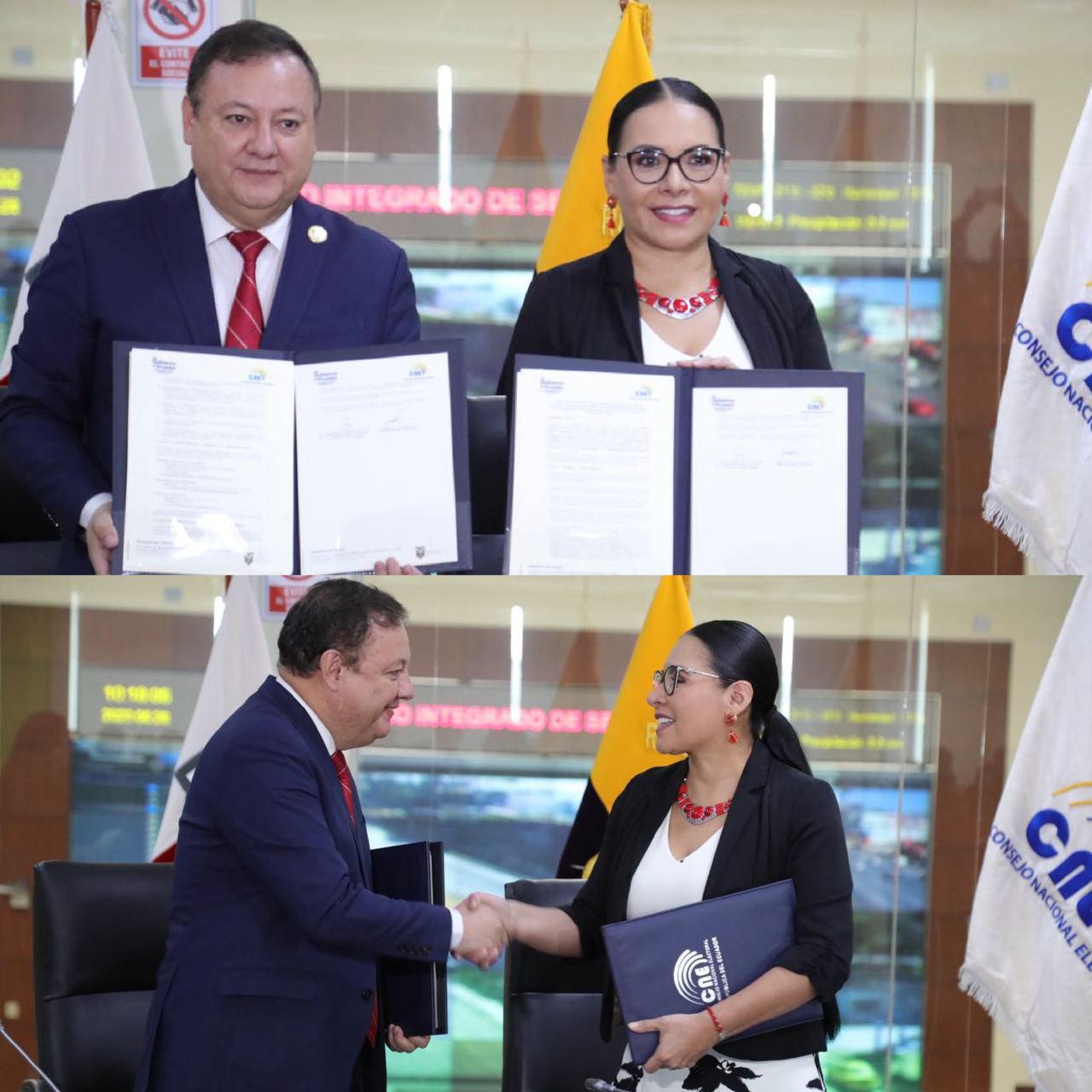Este 28 de junio el Consejo Nacional Electoral (CNE) y el Ministerio del Interior suscribieron un Convenio Interinstitucional para garantizar la organización, seguridad, mantenimiento del orden público, control y transporte durante las Elecciones Presidenciales y Legislativas Anticipadas 2023. El acuerdo se firmó en las instalaciones del SIS ECU-911, en Quito.