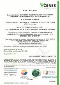 Foto: Certificado Punto Verde como empresa ECO-EFICIENTE a Contecon Guayaquil S.A.