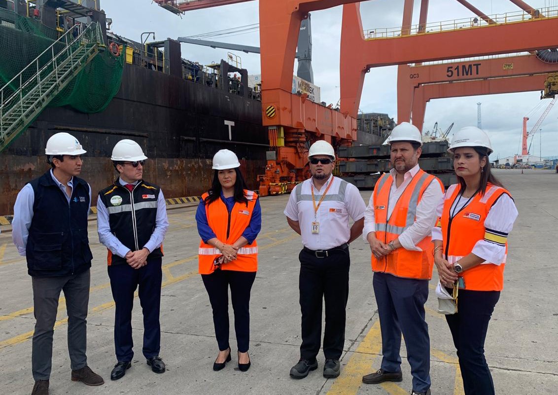 Los Ministros de Transporte y Obras Públicas, Gabriel Martínez; y Salud, Catalina Andramuño; junto a la Subsecretaria de Puertos, Verónica Alcívar; y el Gerente General de Contecon Guayaquil S.A., José Antonio Contreras, recorrieron las instalaciones del Puerto Marítimo “Libertador Simón Bolívar”, con el objetivo de verificar la aplicación de los protocolos de seguridad y prevención contra el coronavirus.