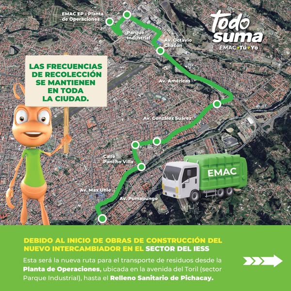 EMAC EP garantiza la continuidad del servicio de recolección durante la construcción del nuevo intercambiador en el sector del IESS.