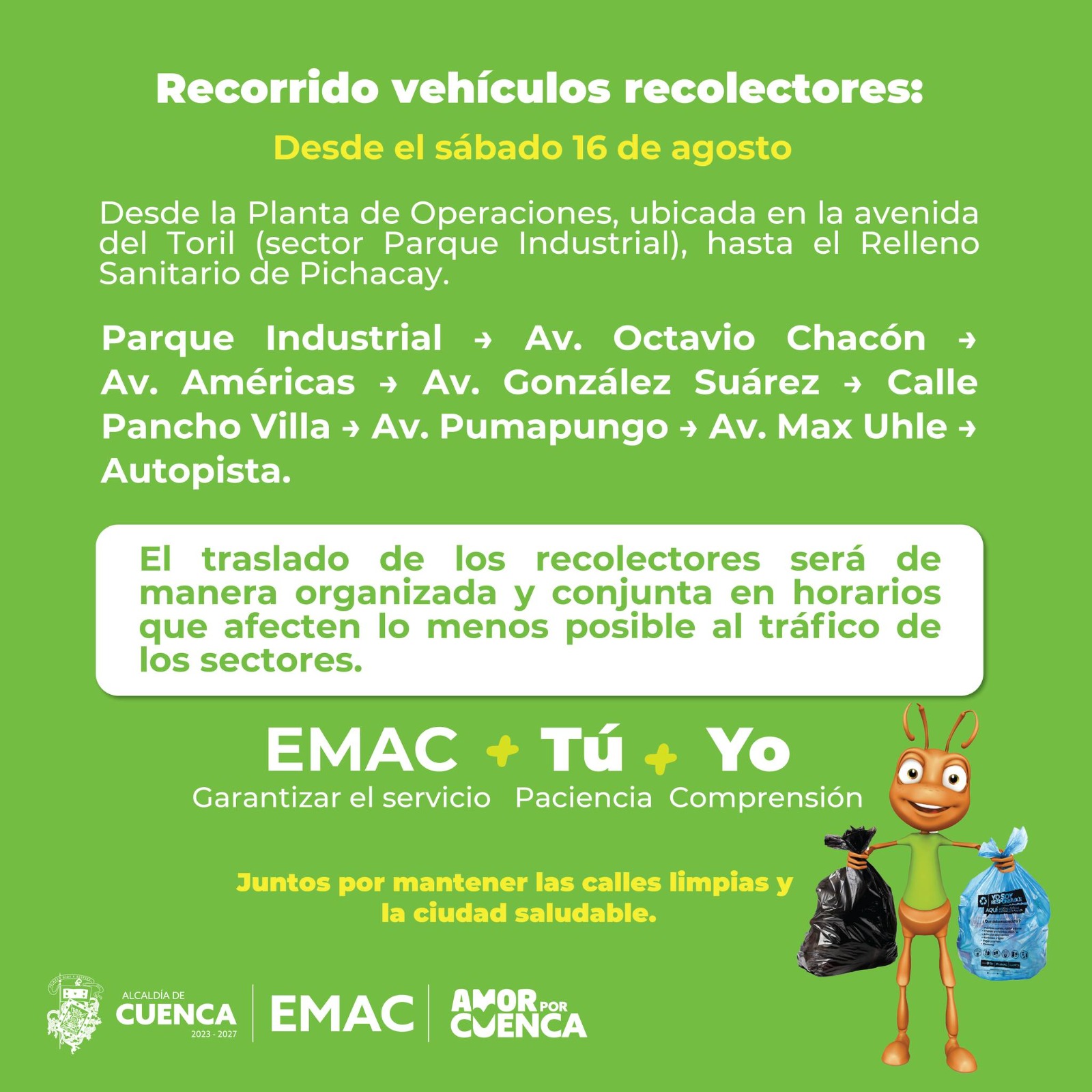 Con esta medida, la empresa reafirma su compromiso con la salubridad, el ambiente y una Cuenca limpia y ordenada.