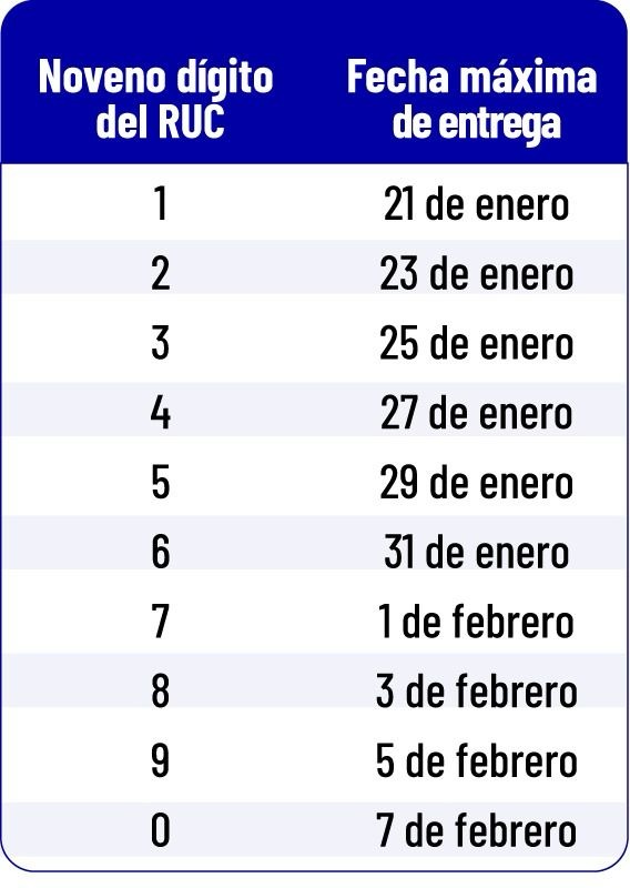 Conforme la resolución Nro. NAC-DGERCGC24-00000037, las fechas máximas para la presentación del Anexo RDEP del periodo 2025 por parte de los empleadores son las siguientes: