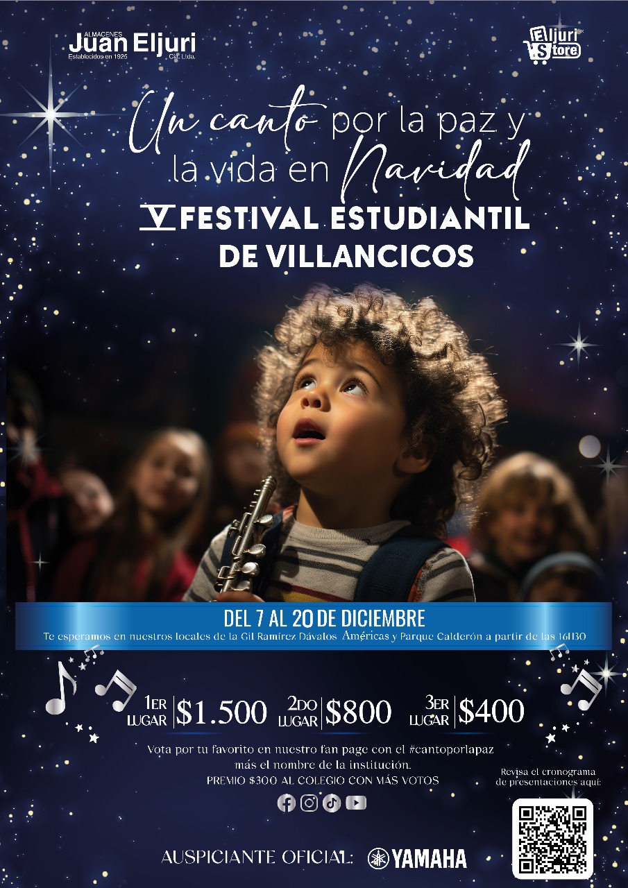 Este año, la magia de la navidad se une a la energía y el talento de nuestros estudiantes en el tan esperado festival de Villancicos, bajo el lema “Un Canto por la paz y la vida en Navidad”. Es un honor para nosotros invitar a la comunidad a sumergirse en la alegría de la temporada y disfrutar de una tarde llena de música, espiritualidad y solidaridad.