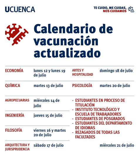 La Universidad de Cuenca adelanta el proceso de vacunación a su comunidad universitaria