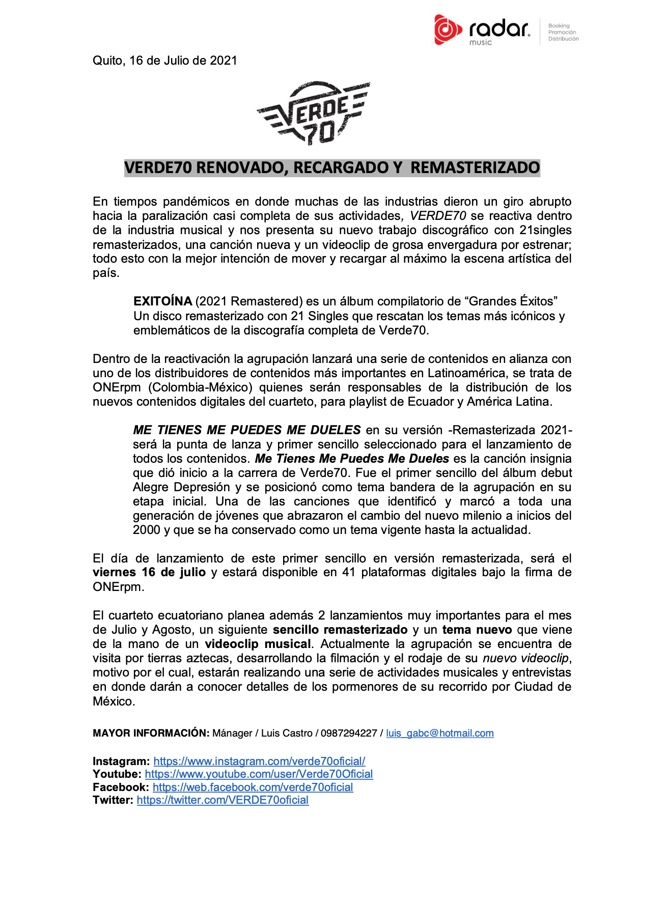 21 julio 2021 ME TIENES, ME PUEDES, ME DUELES REMASTERIZADO |By Administrador Vision|0 Comment|Entretenimiento ME TIENES, ME PUEDES, ME DUELES REMASTERIZADO DCS – PROMO MUSIC |#LUIS CASTRO, #PROMO MUSIC, #VERDE70 Share Post Estreno – El ecuatoriano ESTEBAN GLEZ presenta «LENTO», su nuevo sencillo EN ONDIRECTV: RONNIE WOOD: SOMEBODY UP THERE LIKES ME About Post Author Administrador Vision Leave a Reply Cancel ReplyYou must be logged in to post a comment.