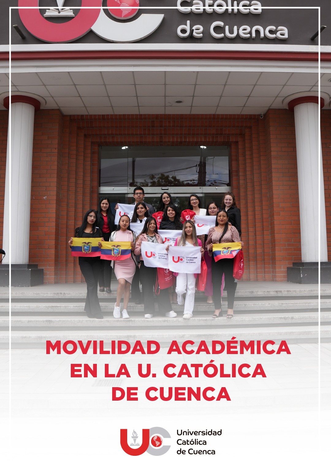En cumplimiento con los objetivos institucionales y como parte de la internacionalización en docentes, estudiantes y administrativos de la Universidad Católica de Cuenca, se lleva a cabo movilidades académicas a diferentes universidades de varios países. En esta ocasión, se realiza una movilidad de 19 estudiantes de diferentes carreras de la universidad: 15 de ellos efectuarán un semestre académico en universidades de Bogotá y Manizales; y cuatro estudiantes realizarán prácticas comunitarias en instituciones de salud en la misma capital colombiana.