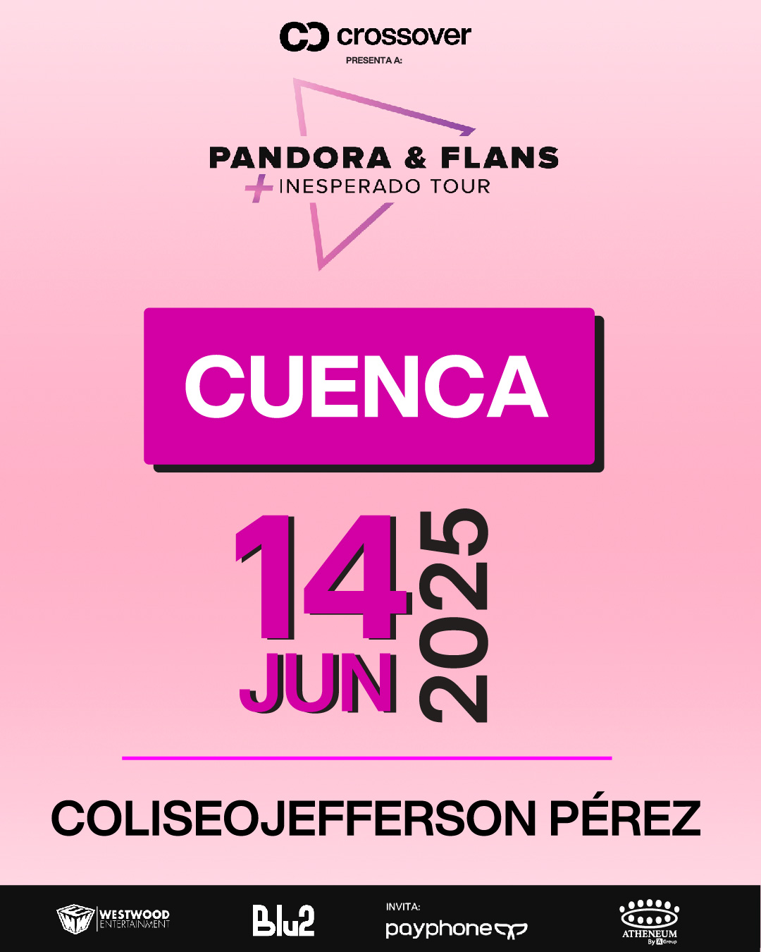 Quito prepárate para recibir a Pandora & Flans este viernes 13 de junio en el Arena Top Media Cumbayá. Cuenca tu turno será el sábado 14 de junio en el Coliseo Jefferson Pérez. Bajo la producción y respaldo de Crossover. Entradas a la venta en www.buenplan.com.ec Precios de las localidades: