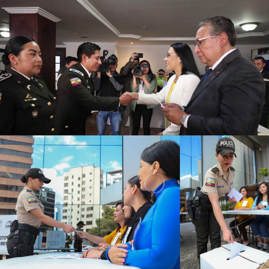En cumplimiento de lo establecido en la Constitución de la República y el Código de la Democracia, el Consejo Nacional Electoral (CNE), este 03 de agosto, entregó 51.068 credenciales a los miembros de la Policía Nacional en Servicio Activo, para que ejerzan su derecho al voto facultativo en las Elecciones Anticipadas 2023.