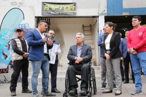 El presidente de la República, Lenín Moreno, entregó Créditos SOS a emprendedores afectados por los actos vandálicos que se desarrollaron durante las manifestaciones y visitó los negocios perjudicados. El evento se desarrolló la mañana de este jueves 17 en los alrededores de la Contraloría General del Estado, zona con mayor afectación tras las protestas, y acompañaron al Jefe de Estado la ministra de Gobierno, María Paula Romo; el presidente del Directorio de BanEcuador B.P, Jorge Wated, y el secretario Particular de la Presidencia, Juan Sebastián Roldán.