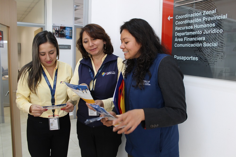 Funcionarios del Registro Civil del Azuay y estudiantes de la Unidad Educativa Sudamericano en Cuenca, se informaron sobre el derecho que tienen todas personas de buscar, recibir y difundir información e ideas, sin consideración de fronteras y por cualquier medio de transmisión; según lo establece la Constitución del Ecuador, La Convención Americana de Derechos Humanos y la Ley de Comunicación (LOC).