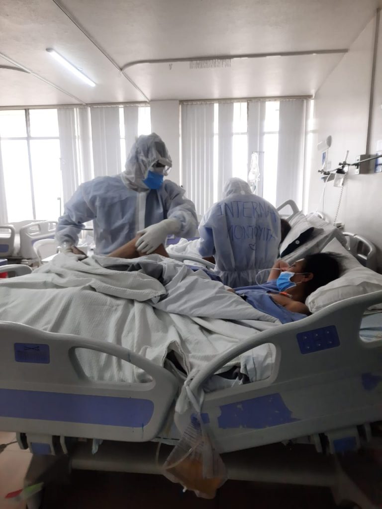Por su parte, Nancy Maza, terapista respiratoria, explica que: “El trabajo que realizamos con pacientes Covid, es la permeabilidad de las vías respiratorias; al ser pacientes que generan mucha flema y por la posición que tienen que estar pronados (asistencia respiratoria boca abajo) hace que se acumulen las secreciones. La terapia respiratoria permite que exista una buena entrada del aire, se mantenga más oxigenado y ventilado y por ende su sistema respiratorio se mantenga estabilizado mientras el paciente está dormido”.