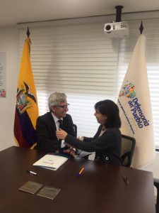 La suscripción del presente convenio se realizó en las instalaciones de la Defensoría del Pueblo del Ecuador, en la ciudad de Quito, con la presencia de Freddy Álvarez, rector de la UNAE y Gina Benavides, Defensora del Pueblo (e).