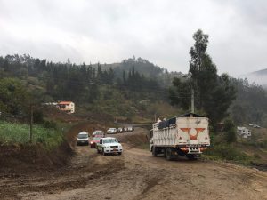 Al momento maquinaria de la Prefectura se encuentra trabajando en el desalojo de material en ciertos tramos donde se realizó el ensanchamiento de la carretera, en forma paralela inicio los trabajos de lastrado. El Prefecto del Azuay dio a conocer que se ha mejorado las condiciones geométricas: ancho de la vía, curvas, pendiente, pasos de agua y quebradas en 800 mts.